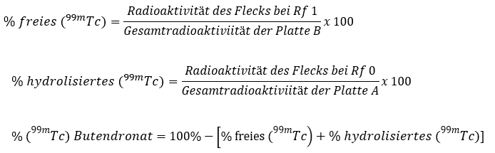 Beim chromatographischen System B beträgt der Rf des freien (99mTc) 1, und beim chromatographischen System A beträgt der Rf des hydrolysierten (99mTc) 0.