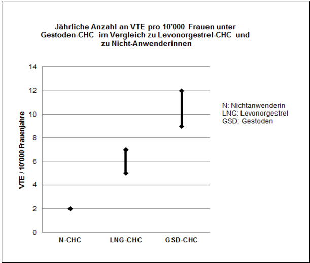 Aufgrund der vorliegenden epidemiologischen Daten wird geschätzt, dass im Verlauf eines Jahres 9-12 von 10'000 Frauen, die ein Gestoden-haltiges CHC anwenden, eine VTE erleiden; im Vergleich hierzu kommt es pro Jahr bei 5-7 von 10'000 Frauen, die ein Levonorgestrel-haltiges CHC anwenden, zu einer VTE. In beiden Fällen ist die Anzahl an VTE pro Jahr geringer als die erwartete Anzahl während einer Schwangerschaft oder in der postpartalen Phase.