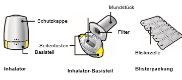 ·Diese Packung enthält einen Inhalator und Kapseln (in Blisterstreifen), die das Arzneimittel als Pulver zur Inhalation enthalten.