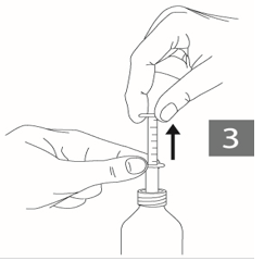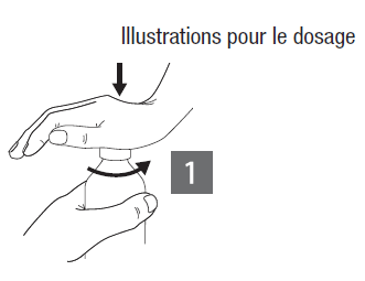 Solution orale Fig. 1: le flacon est pourvu d'une fermeture de sécurité pour enfants et peut s'ouvrir de la façon suivante: ·Appuyer sur le bouchon en plastique tout en le faisant tourner dans le sens contraire des aiguilles d'une montre. ·Enlever le bouchon en plastique.