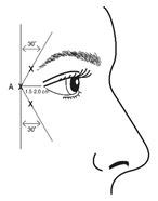 Bei einer gleichzeitigen Behandlung mit Glabellafalten und Krähenfüssen beträgt die Gesamtdosis 64 Allergan-Einheiten, wobei 20 Allergan-Einheiten für Stirnfalten, 20 Allergan-Einheiten für Glabellafalten (siehe Anleitungen für die Anwendung bei Glabellafalten und Abbildung 1) sowie 24 Allergan-Einheiten für Krähenfüsse (siehe Anleitungen für die Anwendung bei Krähenfüssen sowie Abbildungen 2 und 3) verwendet werden.